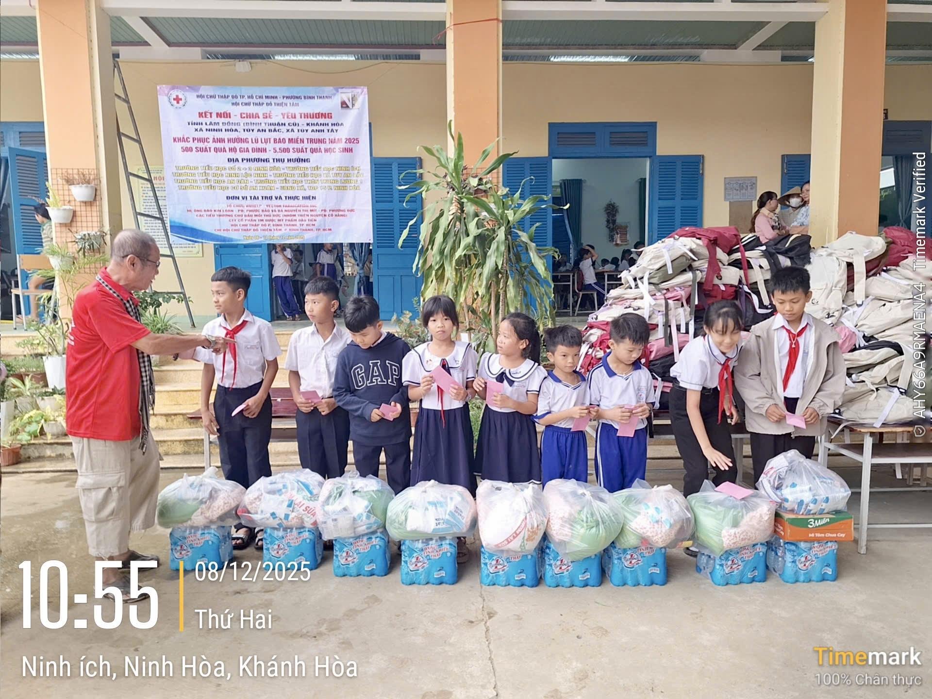 Ngày 8 & 9/12/2025, Hội Chữ Thập Đỏ Thiện Tâm đã lên đường trao quà hỗ trợ cho học sinh tiểu học tại các trường bị ảnh hưởng bởi đợt bão lũ vừa qua ở Khánh Hòa và Đắk Lắk, với sự tài trợ của VNHelp, Vector Fabrication Inc. cùng các mạnh thường quân khác.