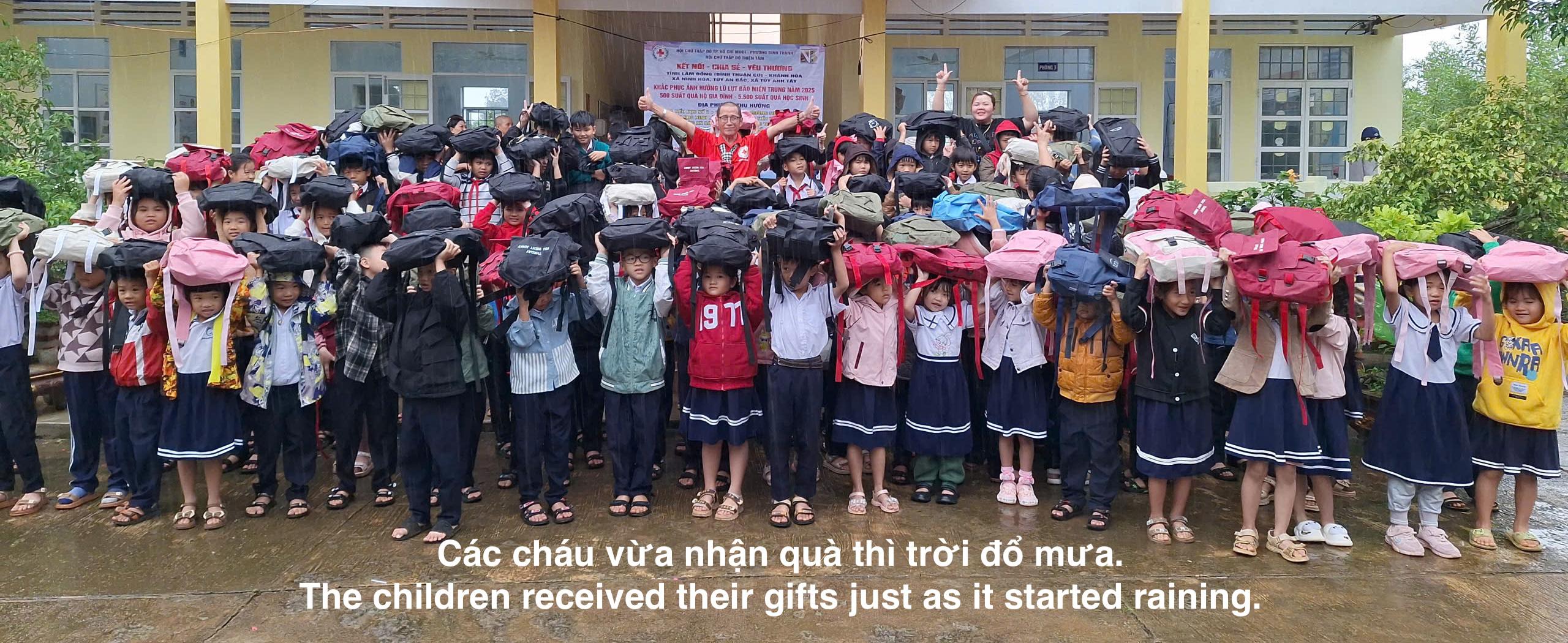 Món quà nhỏ, tinh thần lớn – hy vọng góp phần giúp các em thêm vững vàng, tiếp tục đến trường sau những ngày mưa bão.